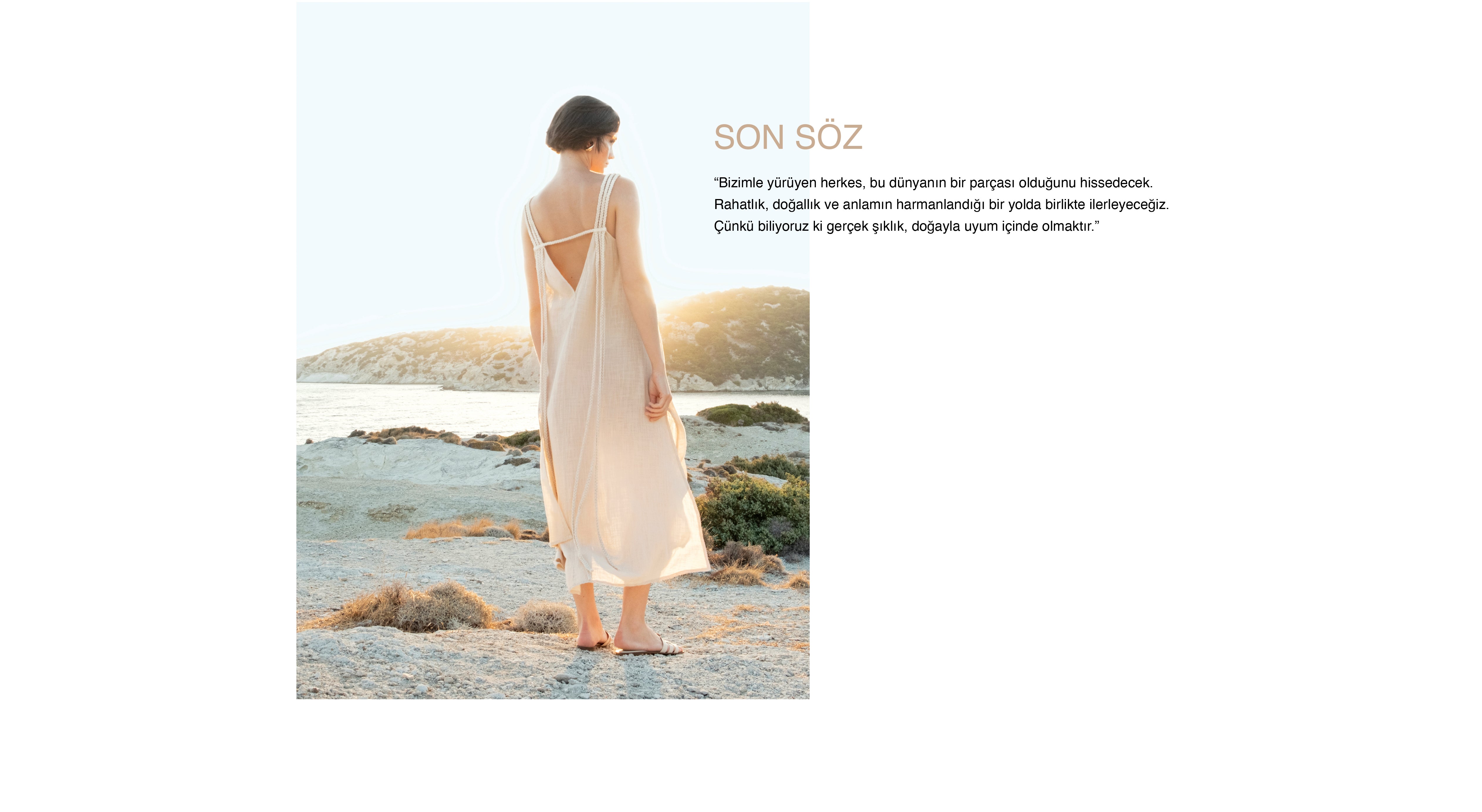 Geniş tedarik ağımızdaki yerel firmalara özel olarak dokuttuğumuz saf pamuk, keten ve kenevir gibi doğal kumaşlarla, her zaman giyilebilecek rahat ve şık giysiler üretiyoruz. Her koleksiyonumuzda uyum, kapsayıcılık ve tamamlayıcılığı ön planda tutuyoruz. Bu doğrultuda, ürün yelpazemizi kadın, erkek, çocuk ve unisex modellerle çeşitlendiriyoruz. Tasarımlarımızın en belirgin özelliği, zamansız parçalardan oluşmasıdır. Mümkün olduğunca oversize rahat kalıplar kullanıyor ve her parçanın birbiriyle uyumlu olmasını sağlıyoruz.